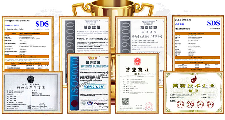 Xi'an Deli Biochemical Industry Co.,Ltd. болып табыладыциклодекстрин мен оның туындыларын зерттеу мен әзірлеуге, өндіруге және сатуға маманданған жоғары технологиялық кәсіпорын. 1999 жылы 27 тамызда құрылған күннен бастап компания «аксессуарларға назар аудару, бірінші кезекте сапаға, шынайы қызмет көрсетуге, бірінші сыныпқа ұмтылу» сапа саясатын ұстанады. 20 жылдан астам қажырлы еңбек пен дамудан кейін компанияда қазіргі уақытта DELI брендінің гидроксипропил бетадекс, DELI бренді Betadex сульфобутил эфирі натрийі бар. Жоғарыда аталған өнімдер тіркеліп, FDA-ға жіберілді.