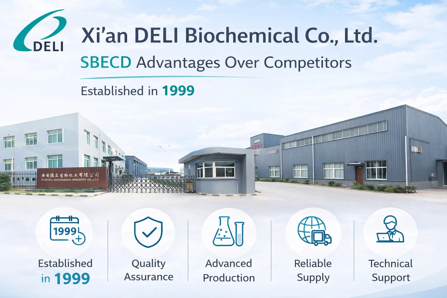 DELI Biochemical - Betadex сульфобутил натрийін шығаратын ірі компаниялардың бірі. Олар ең қатаң дәрілік стандарттарға сәйкес келетін инъекциялық ингредиенттерді жасайды. Біз жаңа препараттарды әзірлеуде ең жақсы серіктеспіз, өйткені біз сапа, сенімділік және тұтынушылардың қанағаттанушылығы туралы ойлаймыз. Сіз DELI артықшылығын біздің толық техникалық көмек пен кепілді жеткізу сенімділігі арқылы ала аласыз. Арнайы құрастыру қажеттіліктерін талқылау үшін xadl@xadl.com мекенжайы бойынша бізге хабарласыңыз.